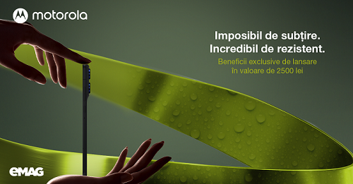 Motorola continuă să inoveze în designul smartphone-urilor și anunță o lansare exclusivă la eMAG: un nou dispozitiv ultra-subțire, cu un profil impresionant și performanțe de top. Oferta de lansare este limitată și include beneficii premium pentru cei care se înscriu în campanie, înainte de lansarea oficială a produsului.